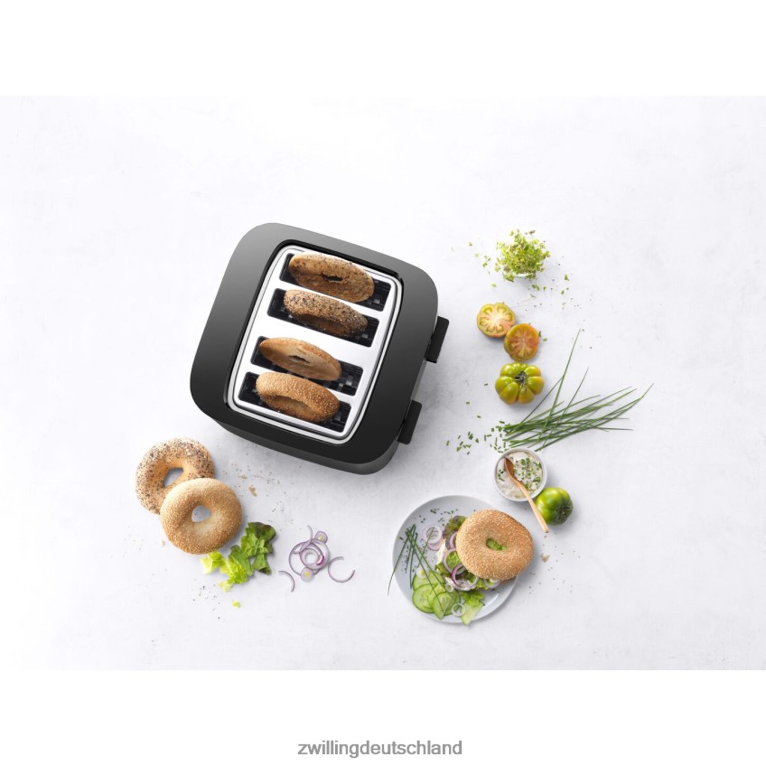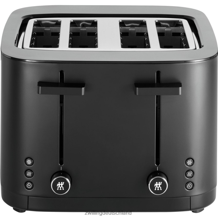 Der Zwilling-Toaster mit 4 Schlitzen sorgt bei jedem Gebrauch für eine gleichmäßige Bräunung von Toast, Bagels, Muffins und mehr. Acht separate Heizelemente und eine ausgewogene Wärmeverteilung sorgen dafür, dass jede Brotscheibe auch nach mehrmaligem Toasten gleichmäßig auf beiden Seiten geröstet wird. Das Ergebnis: Toast, der außen knusprig und innen weich ist. Und wenn es fertig ist, fliegt der Toast nicht aus dem Toaster. Die Soft-Lift-Funktion sorgt für ein sanftes Hochgleiten und der eingebaute Extra-Lift ermöglicht die sichere Entnahme auch kleinerer Scheiben. Das Aufräumen ist ein Kinderspiel. Die Krümel landen in der Krümelschublade, die zur einfachen Entnahme herausgezogen werden kann. Wie alle Enfinigy-Produkte bietet der 4-Schlitz-Toaster eine kostenlos herunterladbare App. Der QR-Code der Zwilling Culinary World App auf der Produktverpackung startet die App, sodass Sie eine Datenbank mit Originalrezepten durchsuchen können.